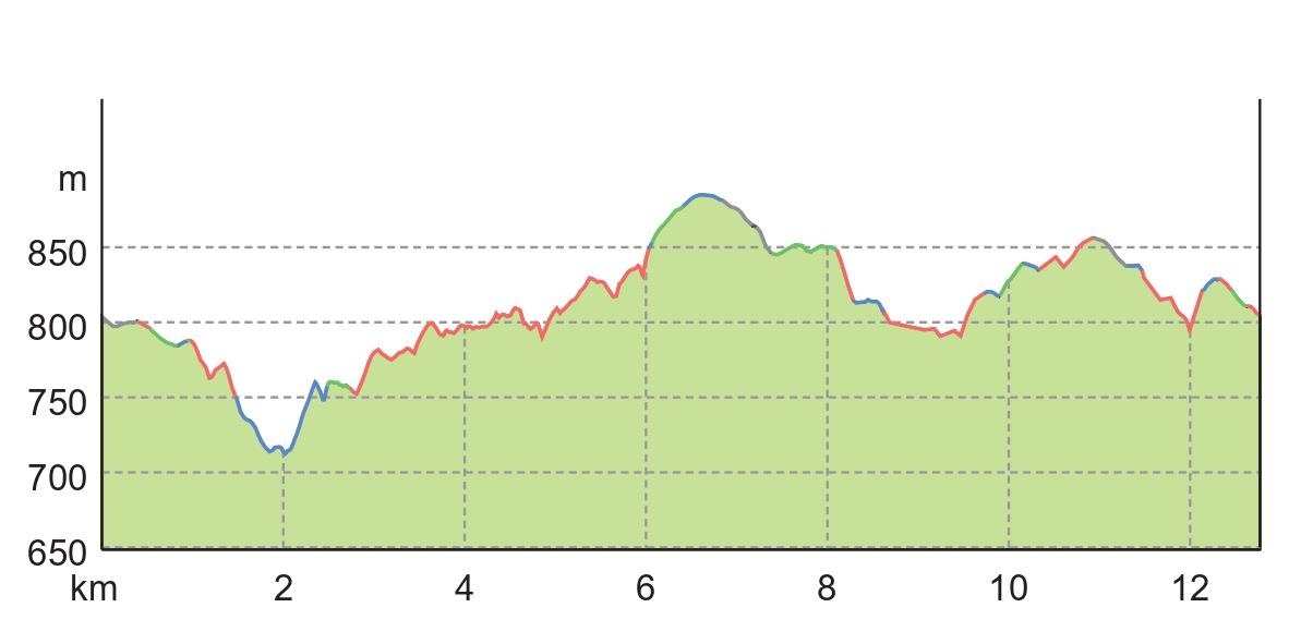 Der knapp 13 km lange Rundwanderweg verläuft zwischen einer Höhe von 722m bis 885m und überwindet dabei 220 Höhenmeter. Er ist als mittelschwere Wanderung eingestuft. Sie sollten mit einer Laufzeit von ca. 4 Stunden rechnen. Da der Weg viele Gelegenheiten für eine kurze Rast und einem längeren Verweilen bietet, kann sich diese Zeit entsprechend verlängern.